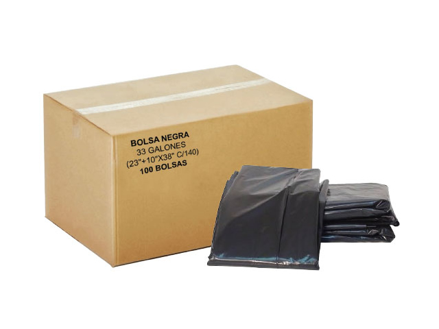 BOLSA NEGRA 33 GAL (23"+10"X38" C/140)
